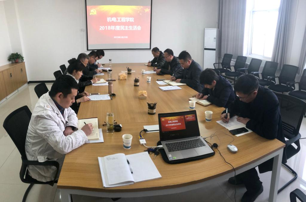 根据学校党委《关于各院(部)级党组织开好2018年度民主生活会的通知》要求,2019年3月25日下午,开云kaiyun官网在临潼校区7号楼310会议室召开2018年度党员领导班子民主生活会。校党委副书记赵小峰、校第四督导组组长黄海峙出席会议,机电学院领导班子全体成员、党委委员参加会议,学院分工会主席、办公室负责人列席会议。民主生活会由学院党委书记王鸣媛主持。