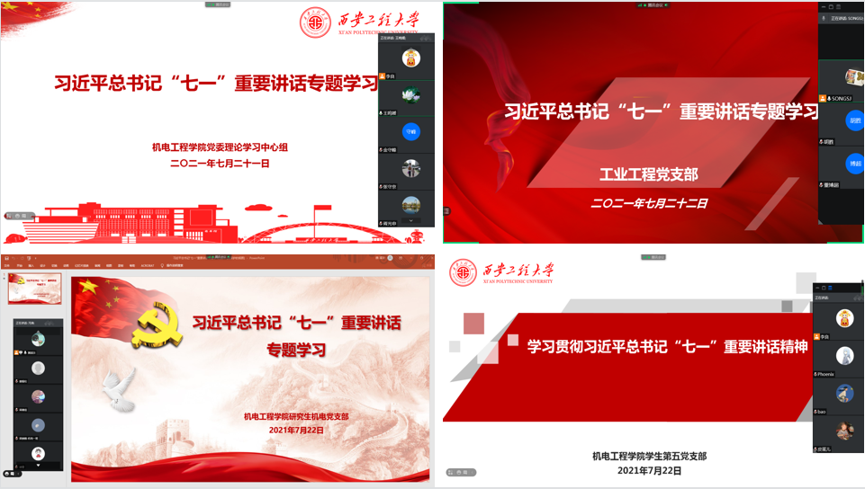 “党史+实践”,让专题学习习近平总书记重要讲话精神“活起来”。学院积极营造“七一”重要讲话精神学习宣传氛围,实现党史学习教育由室内向室外延伸、教育模式由封闭向开放转变。过控党支部、制图机原机零联合党支部赴宝鸡扶眉战役纪念馆和张载祠开展了“弘扬优良传统 传承红色基因”主题党日活动;机械设计党支部赴延安开展了“传承延安精神 践行初心使命”主题党日活动;学院利用学生赴陕西北方动力有限责任公司实习机会,组织学生党员开展了以“学习百年党史 传承兵工精神”为主题的党日活动,通过观看中国共产党成立100周年庆祝大会实况、参观该公司厂史馆,锤炼党员的党性觉悟;利用暑期,学院组织了4支社会实践队伍分赴三原县、商洛市、鄠邑区、杨凌区进行社会实践活动,开展志愿服务,积极开辟党史学习教育“新阵地”,引导学生党员在“沉浸式党史学习教育”中再走“红色历程”、再溯“红色记忆”、再悟“红色精神”。