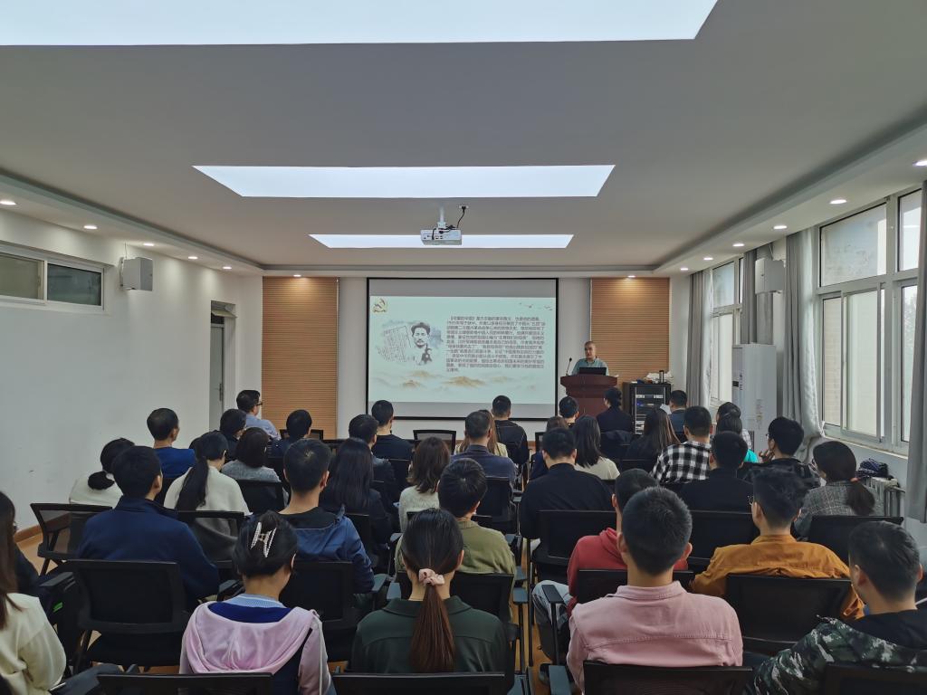 为深入学习贯彻习近平总书记“七一”重要讲话精神,扎实推进党史学习教育,进一步激发全院师生党员学习“四史”的积极性,2021年9月28日,开云kaiyun官网特邀请学校离退办党委书记张平老师为学院师生党员做了题为《歌声中的党史记忆》主题报告。学院全体教师党员和部分学生党员参加了报告会,报告会由学院党委书记王鸣媛主持。