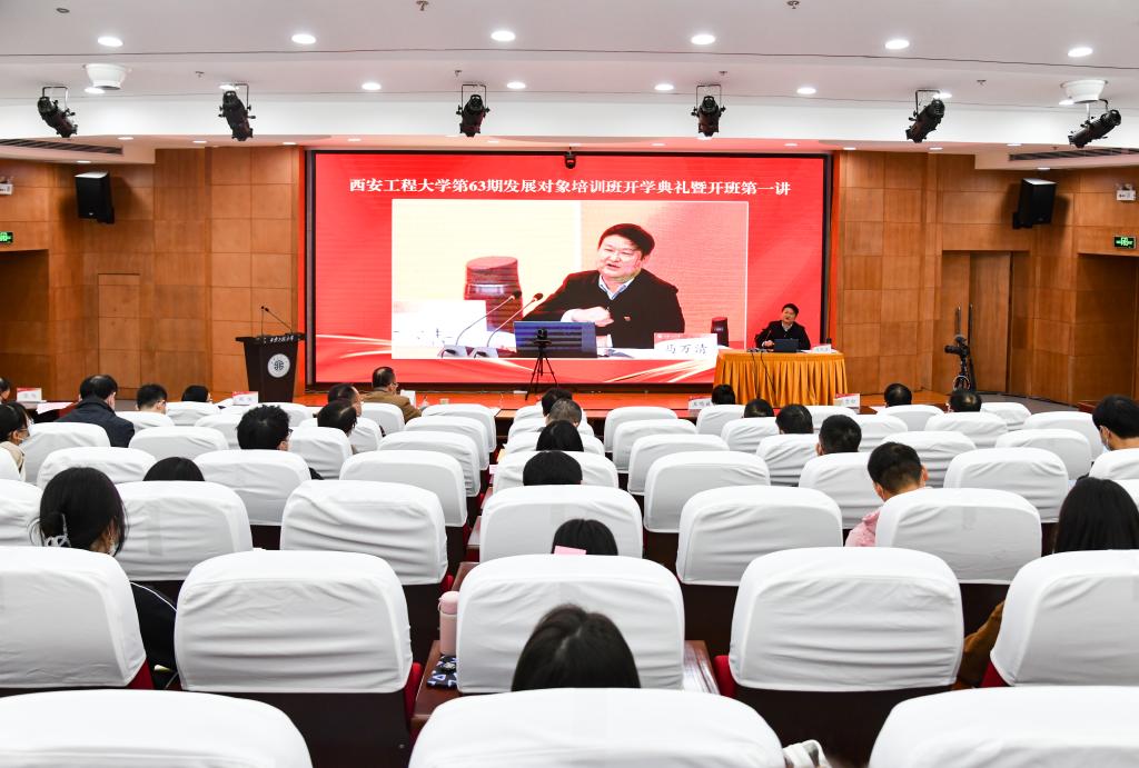 在全党上下学习贯彻党的二十大精神之际,开云官网第63期发展对象培训班开学典礼暨开班第一讲于2022年11月14日下午在临潼校区图书馆一楼报告厅隆重举行。校党委书记、党校校长马万清出席开学典礼并做开班第一讲,校党委理论学习中心组成员、党群部门负责人、院(部)级党组织书记、副书记、组织员、党支部书记和党员发展对象共900余人分别以线上线下方式参加了开学典礼和开班第一讲。典礼由开云kaiyun官网党委书记阚佩主持。按照近期疫情防控要求,本次开学典礼在党政办、宣传部、网信处和教务处的协同配合下,在临潼和金花两校区智慧教室和党团活动室同步进行网络直播。