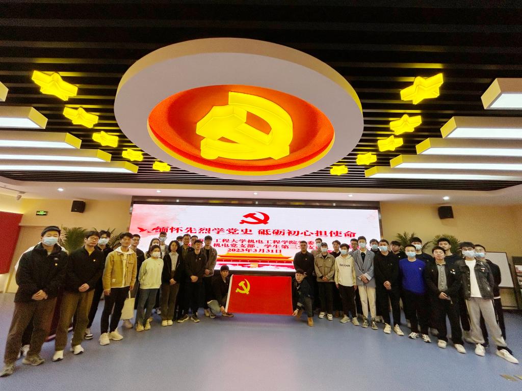 3月31日,支部书记冯翊和秦方刚组织研究生机电党支部和机制学生第三党支部前往碑林区党史学习教育纪念馆开展党史学习教育。党史学习教育纪念馆内,党徽、党旗庄严肃穆、熠熠生辉。通过聆听讲解、参观展览、观看影片,全体党员回顾了中国共产党在艰苦卓绝的革命中不断拼搏、顽强奋斗的伟大历程,学习了革命先烈的英勇事迹,感悟了无私奉献的伟大精神。研究生党员张玮分享了自己的入党故事,认为作为新时代青年党员,应不断提升自己的综合素质,增强自身能力,为实现中华民族伟大复兴的中国梦贡献自己的力量。冯翊带领党员重温入党誓词,激励党员同志不忘初心、牢记使命,永葆党员本色,始终保持昂扬向上的奋斗热情。