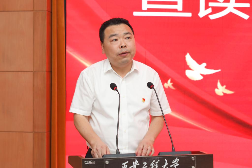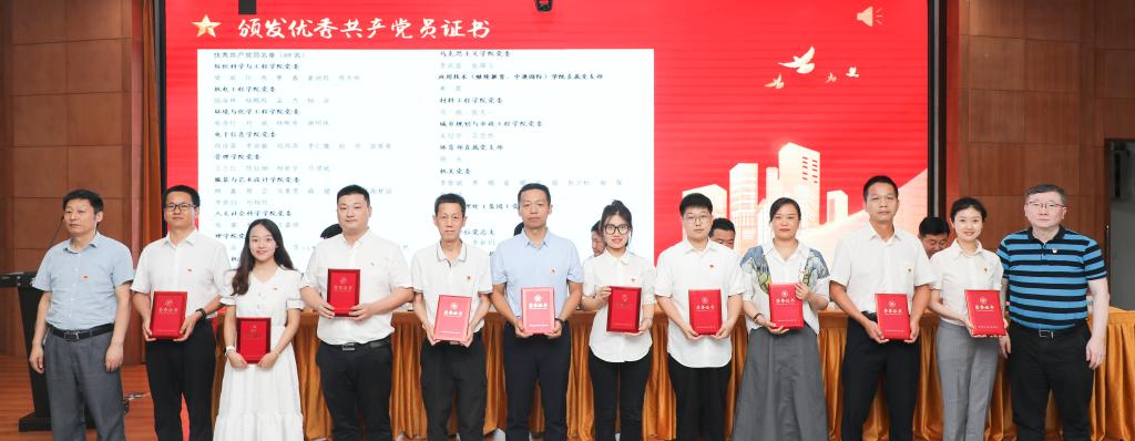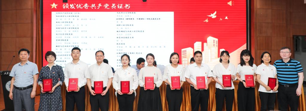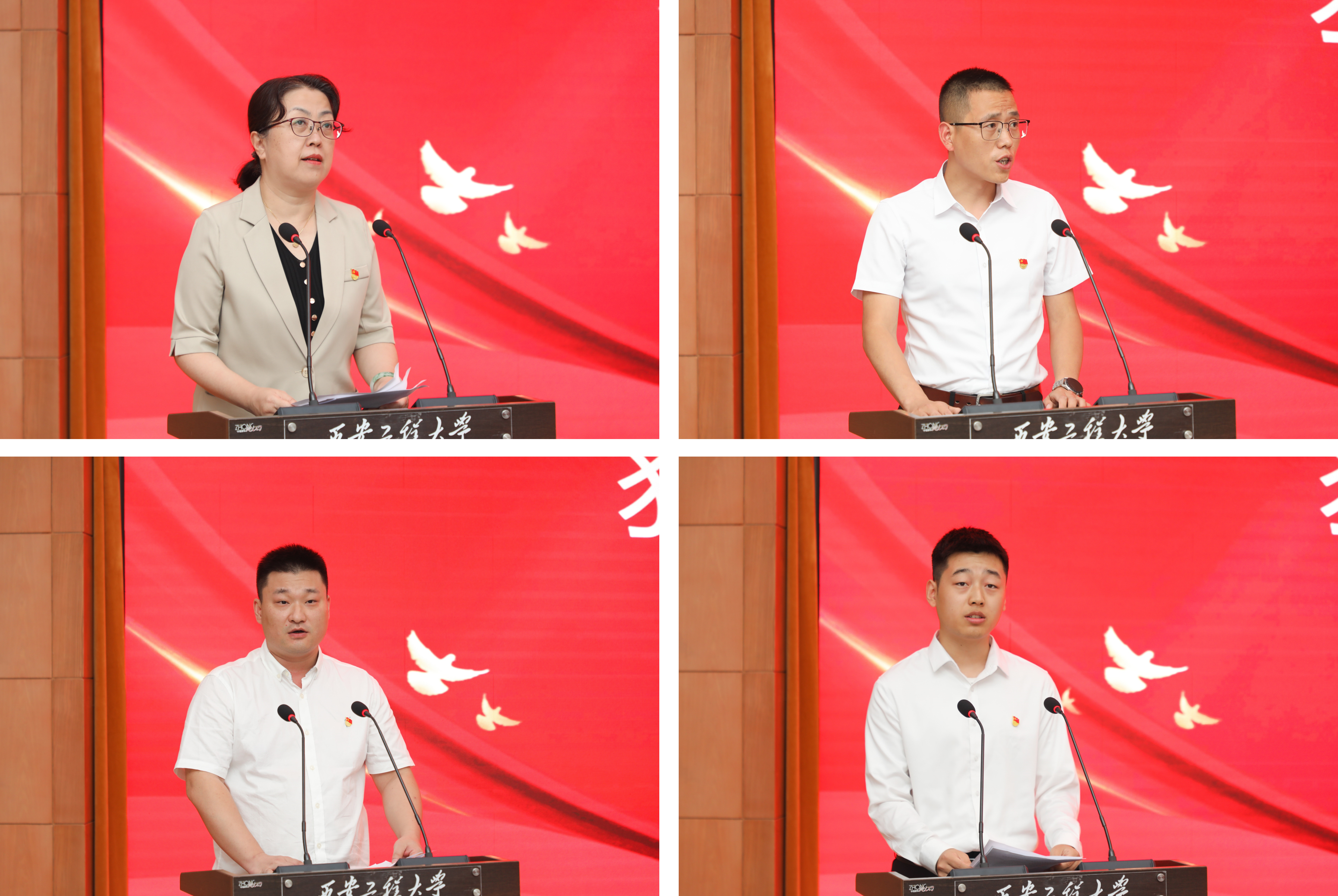 会上,校党委副书记赵小峰宣读了《中共西安工程大学委员会关于表彰优秀共产党员、优秀党务工作者先进基层党组织的决定》,与会校领导为党龄满50年的6名老党员代表颁发了“光荣在党50年”纪念章,为受表彰的优秀共产党员、优秀党务工作者、先进院(部)级党组织和先进党支部代表颁发了奖牌和证书。马克思主义学院党委书记杨永革、开云kaiyun官网研究生党支部副书记孟杰、理学院党委副书记文毅、新媒体艺术学院教师王晨仰分别代表受表彰的先进集体和个人作了交流发言。