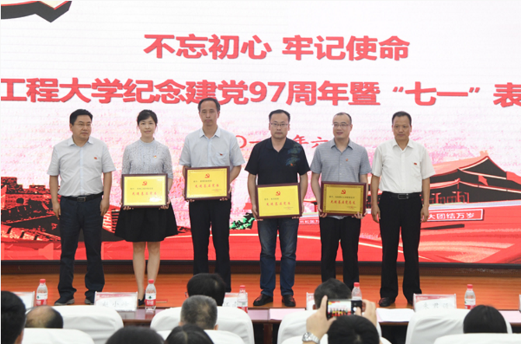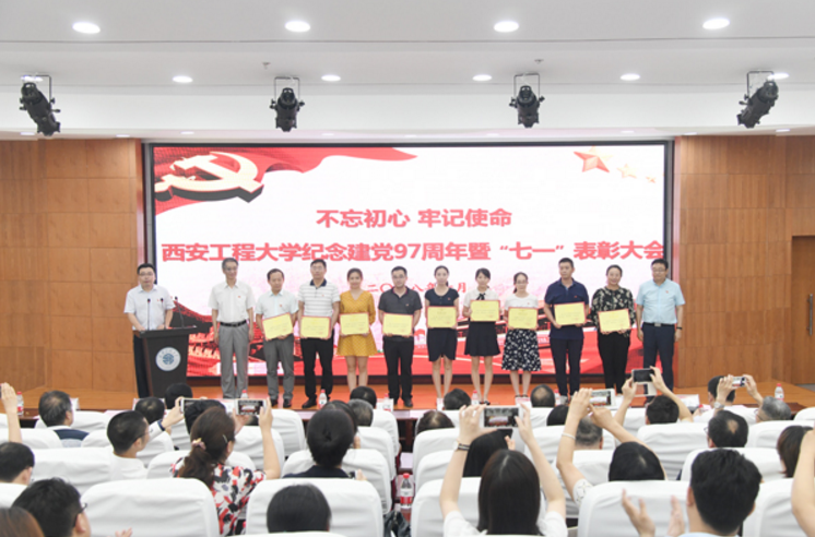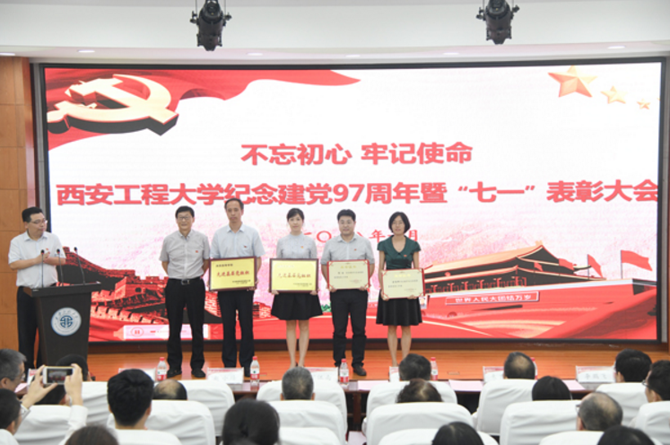 6月28日,陕西省委高教工委、开云官网党委分别召开纪念建党97周年暨庆祝“七一”表彰大会,开云kaiyun官网党委荣获“陕西高等学校先进基层党组织”、“西安工程大学先进基层党委”荣誉称号;管声启、张小平、杜静获校级优秀共产党员;机械设计党支部、制图党支部、学生第一党支部获校级先进党支部;机电党支部、实验中心党支部等14个党支部获2017年“五好党支部”称号。