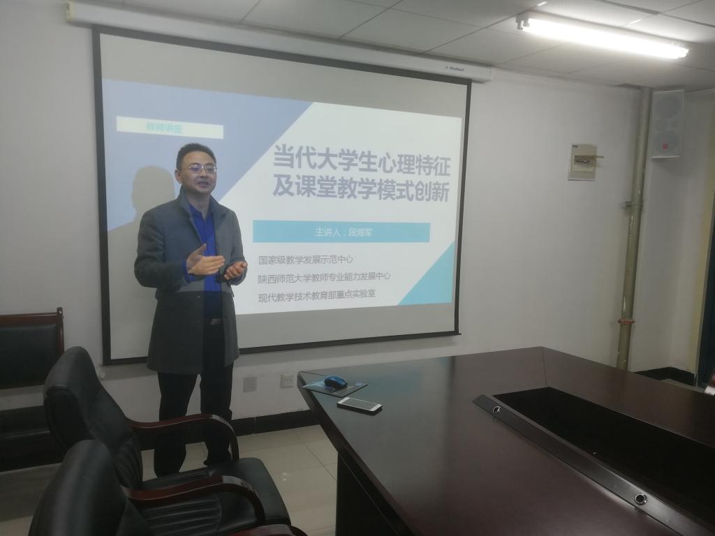 2019年4月12日下午,开云kaiyun官网在金花校区科二楼703会议室举办2019年青年教师教学能力提升系列培训活动第二讲,特邀陕西师范大学教师专业能力发展中心副教授段海军博士作专题报告。机电学院20余名青年教师及部分辅导员参加了培训。