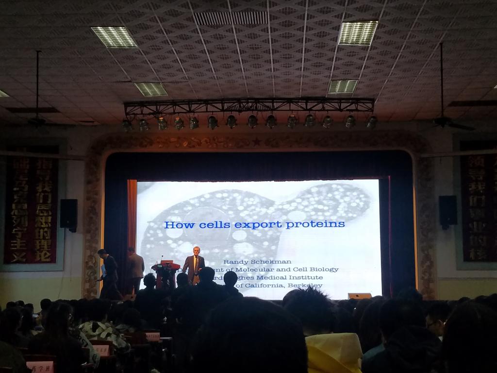 报告中,兰迪·谢克曼回顾了自己童年时期对科学研究产生浓厚兴趣的经历,分享了从事科学研究过程中的趣事。他回顾了在斯坦福大学阿瑟·科恩伯格教授(1959年获得诺贝尔奖)实验组攻读博士学位,以及在加利福尼亚大学伯克利分校作研究期间开展的相关工作,介绍了细胞膜传输的相关研究进展。报告结束后,兰迪·谢克曼教授和现场师生进行了热烈友好的互动交流。