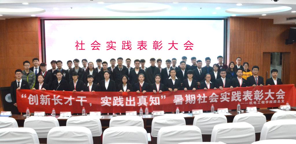 首先,由黄超致辞。黄超强调“纸上得来终觉浅,绝知此事要躬行”,社会实践是一个大舞台,正处于新时代的青年学子,应当以积极的精神风貌参加各项活动,以此来了解社会、了解国情、了解基层,从而从实践中收获不一样的经验与领悟;其次机电学院团总支、学生会、科协、机械工程卓越班1601班四支实践队伍和社会实践先进个人代表付子强、潘焕知、张海洋相继上台展示实践成果;最后曹鑫、黄超为2017年暑期社会实践先进个人和优秀论文获得者颁发荣誉证书,并合影留念。