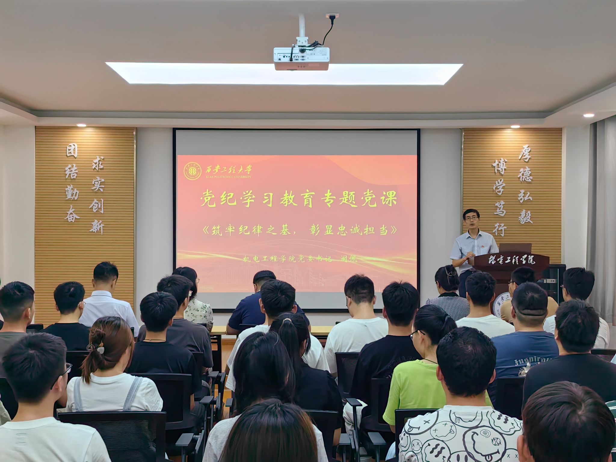 仪式结束后,学院党委书记阚佩结合近三个月的党纪学习教育,为新党员做了题为《筑牢纪律之基,彰显忠诚担当》的专题党课。他指出:对于学纪,要做到明方向、强筋骨、修初心;对于知纪,要保持敬畏心、守底线、自律性;对于明纪,要做到懂规矩、知敬畏、守规矩;对于守纪,要勇于担责任、践宗旨、敢作为。希望全体党员坚守纪律底线,以实际行动践行忠诚干净担当,为推动学院高质量发展再上新台阶贡献青春力量。(撰稿:秦方刚 审稿:阚佩)