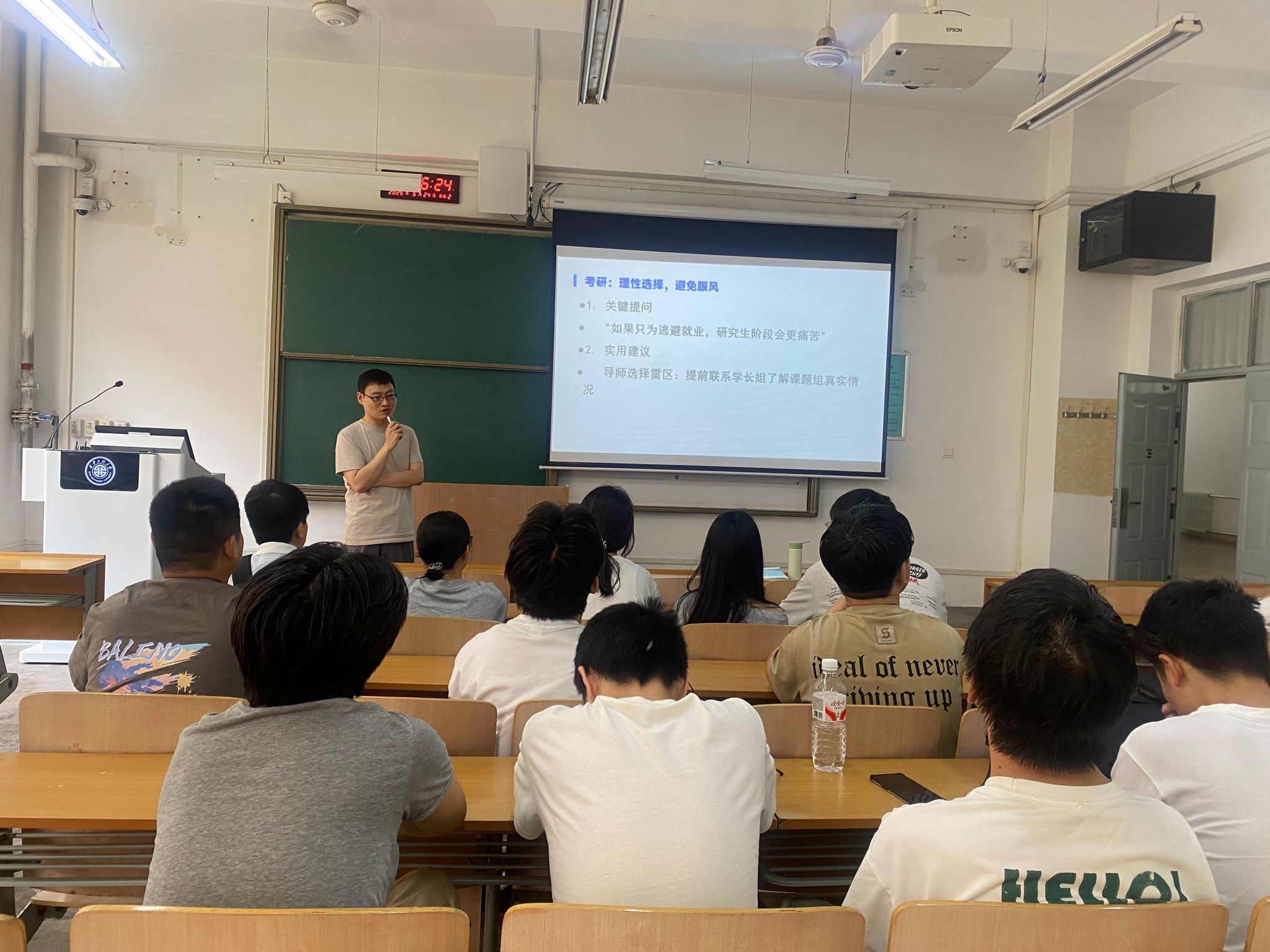 班会上,同学们一起回忆了大学四年的美好生活,军训时挥洒汗水的坚毅脸庞、课堂上专注求知的眼神、实验室里反复调试设备的身影、校园活动中绽放的灿烂笑容一一闪过,勾起大家的满满回忆。互动环节,毕业生踊跃发言,有人分享大学期间最难忘的收获,有人倾诉对老师和同学的不舍,也有人畅谈对未来职业和生活的规划。毕业生张佳慧感慨:刚入校时,我对专业懵懵懂懂,是老师们的悉心教导、同学们的热情帮助,让我找到了方向,学会了成长,真心感谢学院这个温暖的大家庭!