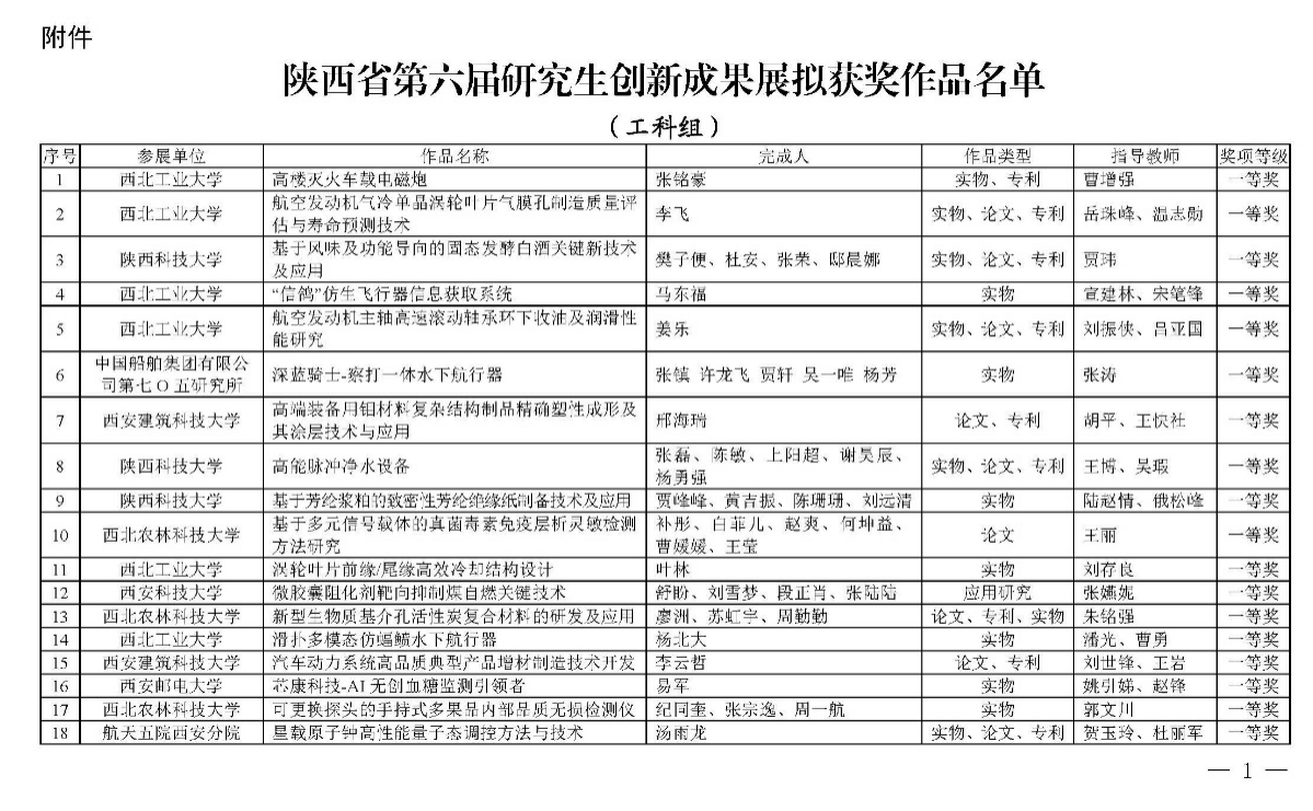 陕西省研究生创新成果展由陕西省教育厅、陕西省学位委员会主办,旨在提高研究生创新实践能力,深化研究生培养机制改革。经单位推荐、材料初评、网络评审和会议评审等环节,本届成果展一等奖110项,二等奖168项,三等奖274项,“留学生创新成果优秀奖”30项。