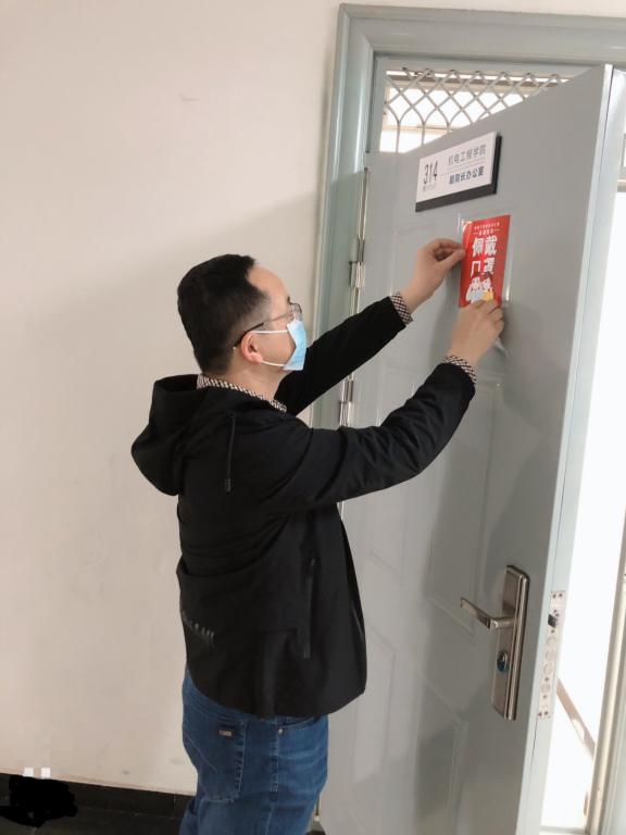 根据校工会和学院党委统一部署,学院工会动员教职员工全面开展爱国卫生运动,对标防控标准对学院办公室和教学实验场所进行了多次清扫、消杀,及时检查和清理了酒精等危险物品。学院工会还精心准备了简短、醒目的温馨提示,实现了办公场所和面向学生开放区域的全覆盖,时刻提醒师生员工返校后落实各项防控措施,得到了学院教职员工的一致肯定和积极响应。