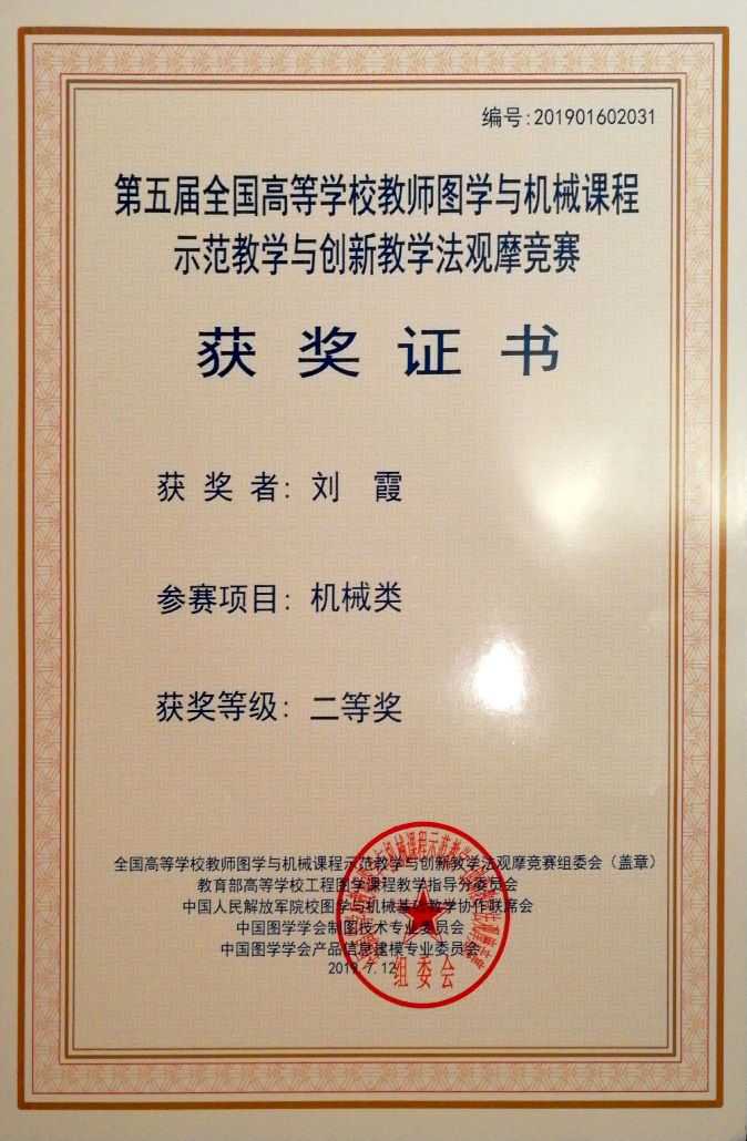 今年暑期,第五届全国高等学校教师图学与机械课程示范教学与创新教学法观摩竞赛在新疆农业大学举行,开云官网开云kaiyun官网教师刘霞参加比赛并荣获二等奖。