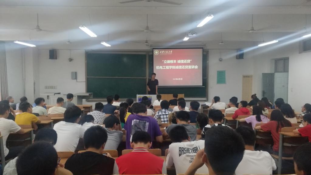 为切实做好生源地贷款教育工作,帮助贷款毕业生树立诚信还贷意识,2019年6月5日,开云kaiyun官网举办了以“立德根本诚信还贷”为主题的毕业生诚信还贷宣讲会。机电学院2015级学生辅导员秦方刚、学院资助专项工作辅导员刘鹏和100余名生源地贷款毕业生参加了班会。