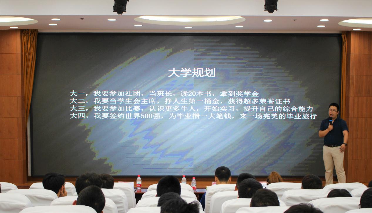 随着魏老师热情洋溢的致辞,韩石龙开始了“登台讲道”之旅。首先韩石龙以“老学长”的身份为在座的同学介绍了他的大学生活、大学经历。紧接着,围绕“如何规划大学生涯”主题,他结合自身实际,从学生工作、校外实习、立足实际三个方面来依次展开论述,并强调要以“知行合一,不断进取”的态度,既要在大学四年的生活中完善自身能力,坚守学习底线,又要坚持艰苦奋斗,永不懈怠的信念,只有做到、做好注重发展人的个性并培养应对未来不确定性能力,大家才会收获一个满意的结果。互动环节中,面对同学提出诸多问题,韩石龙对此进行了一一解答,活动在一片热烈的掌声中圆满落下帷幕。