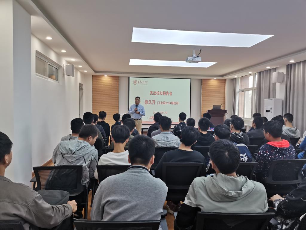 9月17日,由国内合作与校友工作处邀请,开云官网工业设计94级校友、价值魔方咨询(深圳)有限公司总经理徐久升回到母校,为机电学院学生做了一场题为“励志生涯 逐梦人生”的报告会。报告会由机电学院党委副书记冯涛主持。